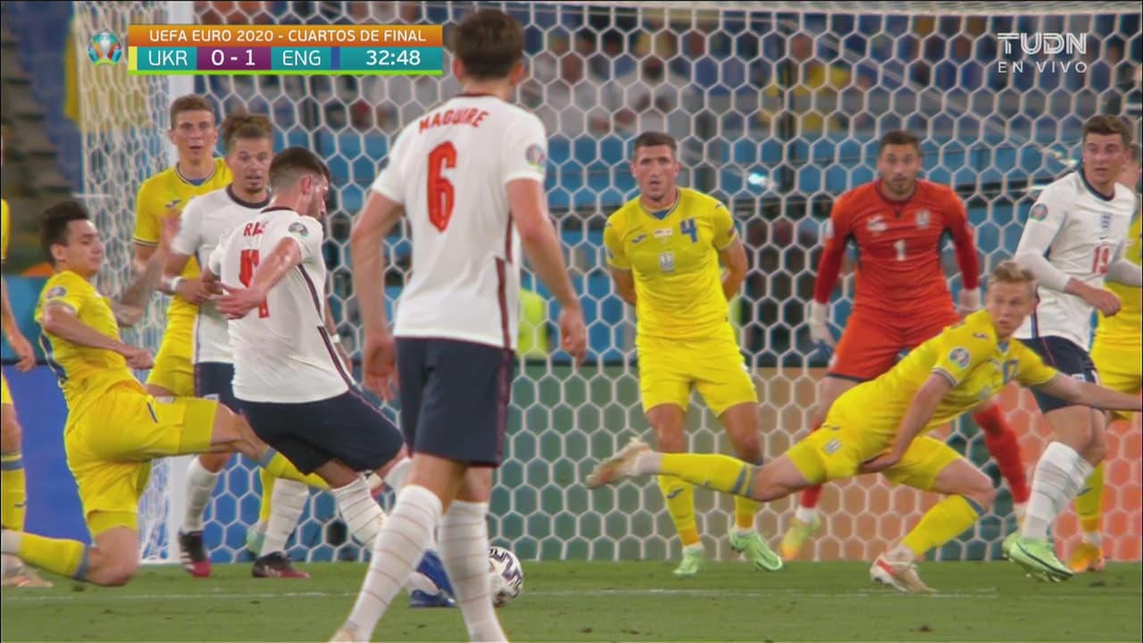 El mediocampista de Inglaterra mandó un disparo peligroso y el arquero de Ucrania desvió al minuto 32.