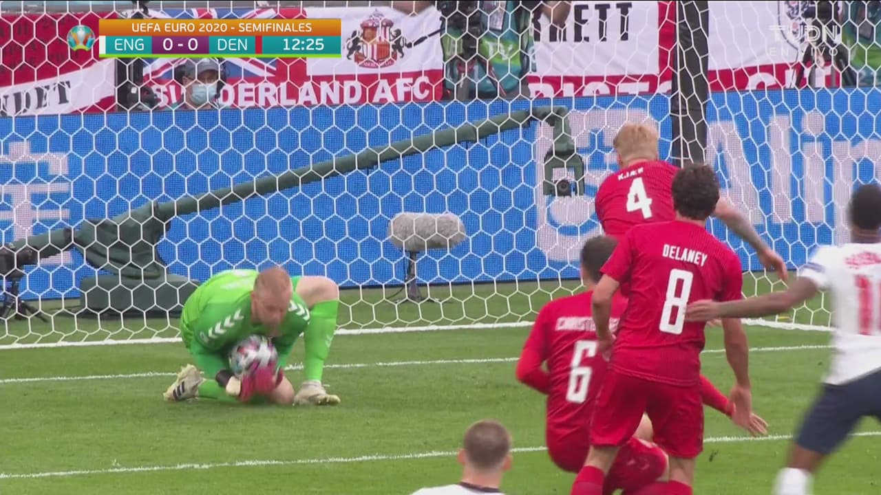 Raheem entró por banda izquierda y se internó al centro para meter disparo a las manos del portero al 13’.