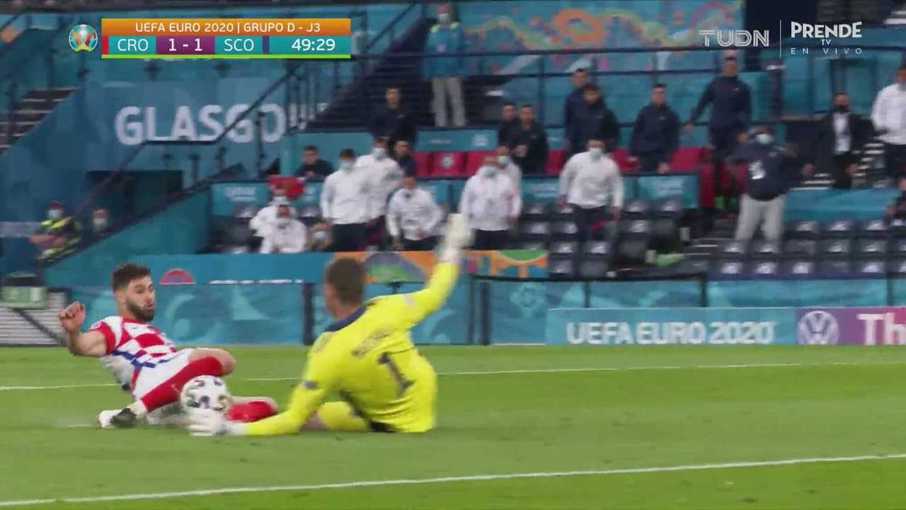 El defensor de Croacia se escapó y el portero de Escocia se lució con su salida al minuto 49’.