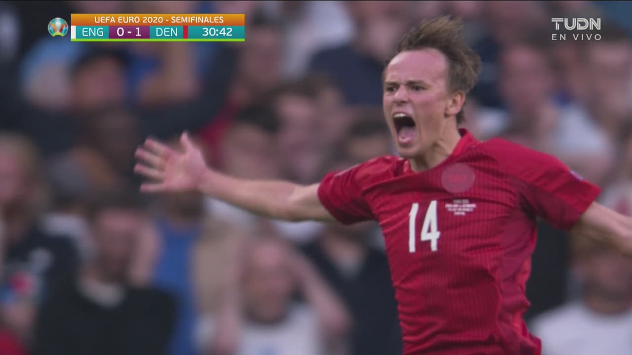 El jugador de Dinamarca metió zapatazo potente que superó a la barrera y se incrustó al arco 30’.