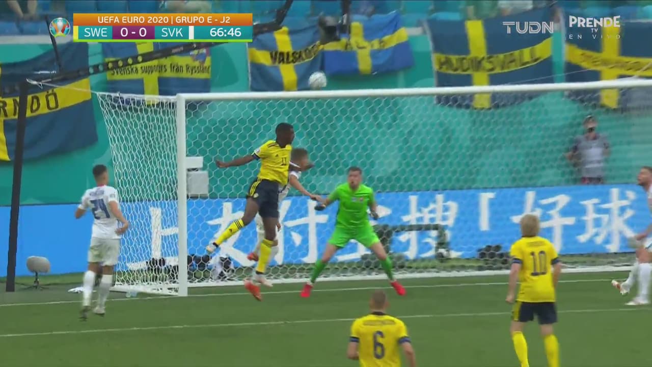 El delantero de Suecia apareció en el área al 66', pero no le dio dirección a su remate.