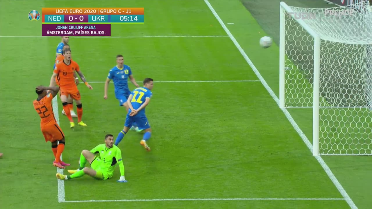 Dumfries recibió el balón en el área y el portero le arrebató la anotación a los 4 minutos.
