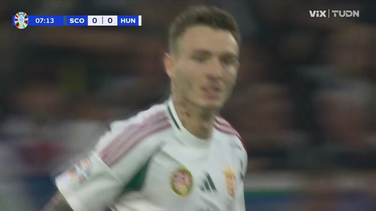 En buen despliegue del cuadro húngaro, el futbolista manda disparo de distancia que el guardameta de Escocia controla.