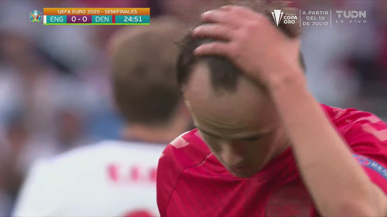 El jugador danés disparó desde los linderos del área y el balón pasó rozando el poste al 25’.