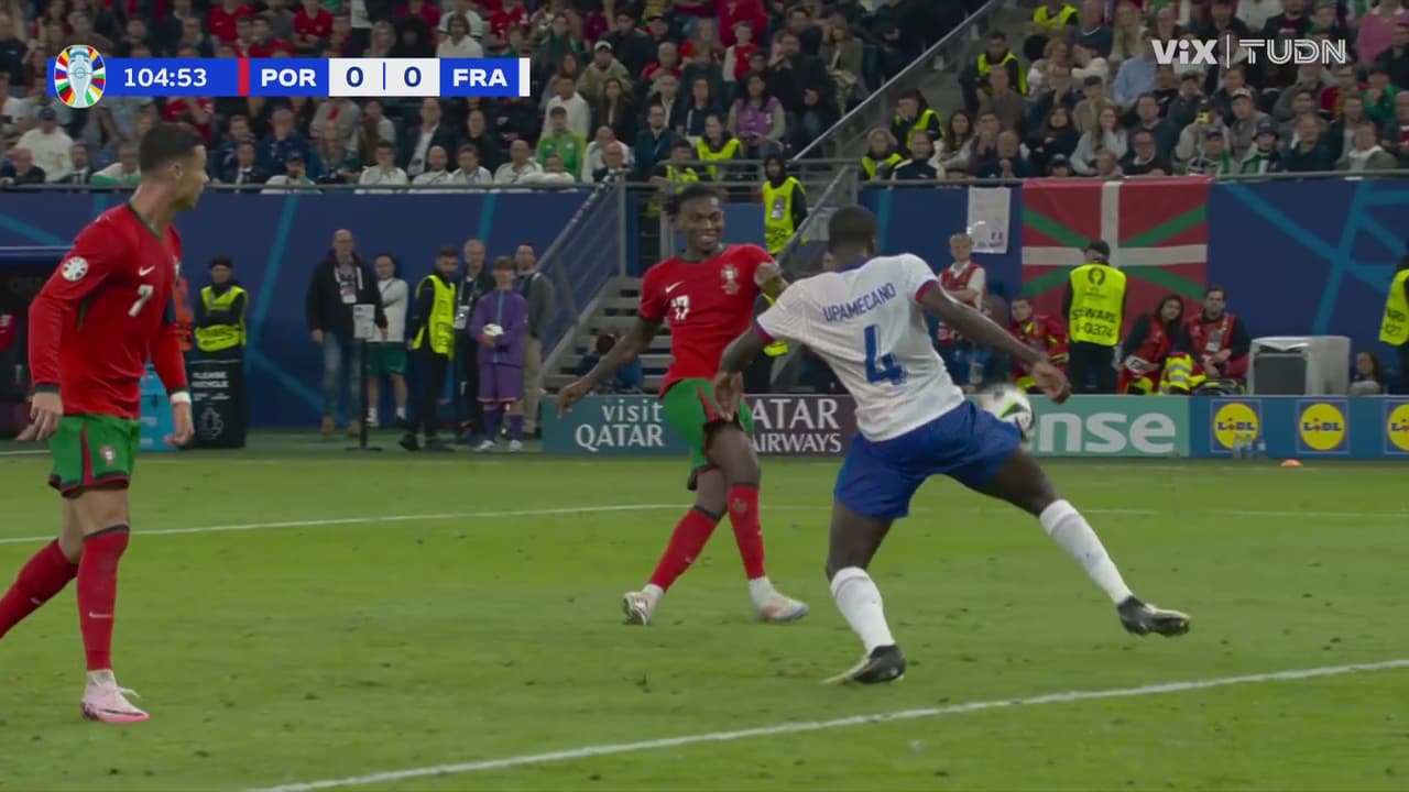 ¡Gran cruce de Upamecano para evitar el gol de Leao!