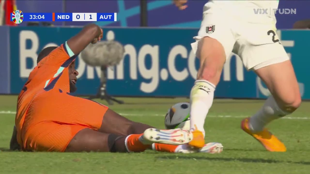 El futbolista de Austria llega tarde y le comete falta sobre Geertruida, quien le pide algo más al central.