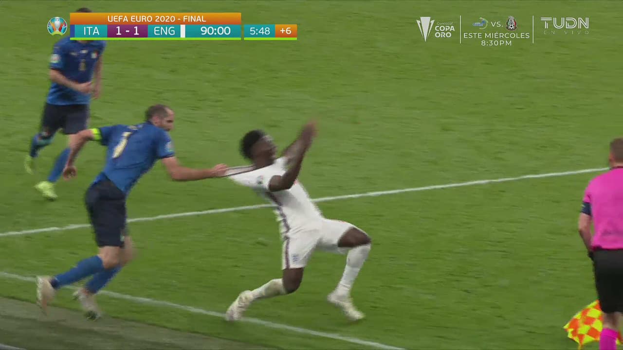 El atacante de Inglaterra le ganó en velocidad a Giorgio, quien lo frenó con una falta al 95’.