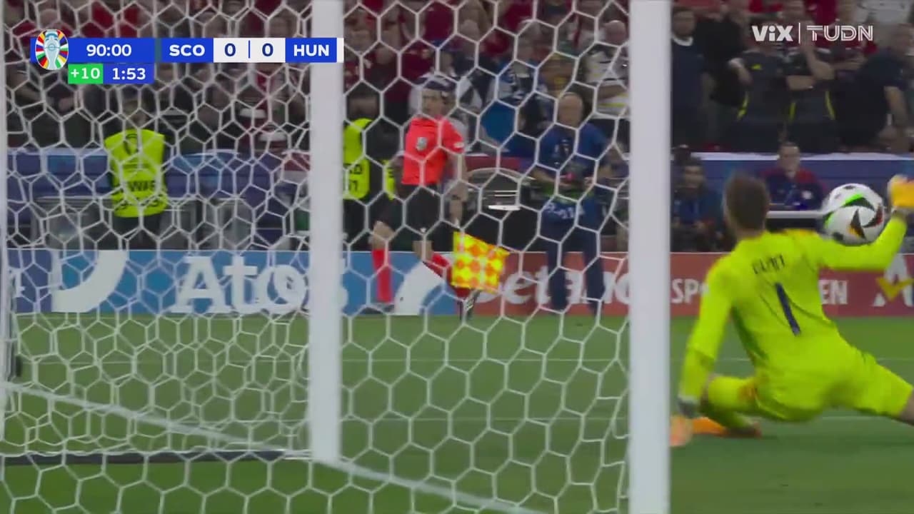 Potente disparo de Csoboth que termina en el poste del arco de Escocia. Los húngaros quieren seguir con vida en la Eurocopa.