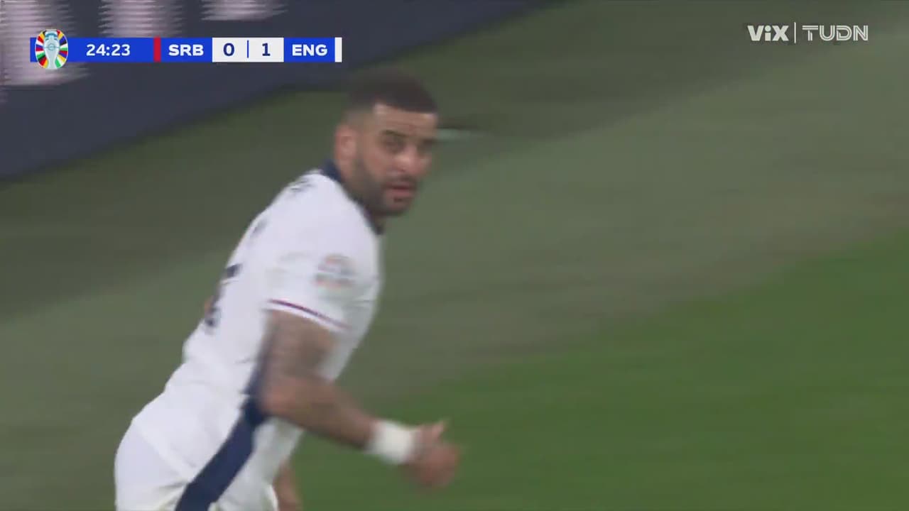 El contragolpe a velocidad de Kyle no fructificó para Inglaterra, Kane y Bellingham no pudieron rematar.