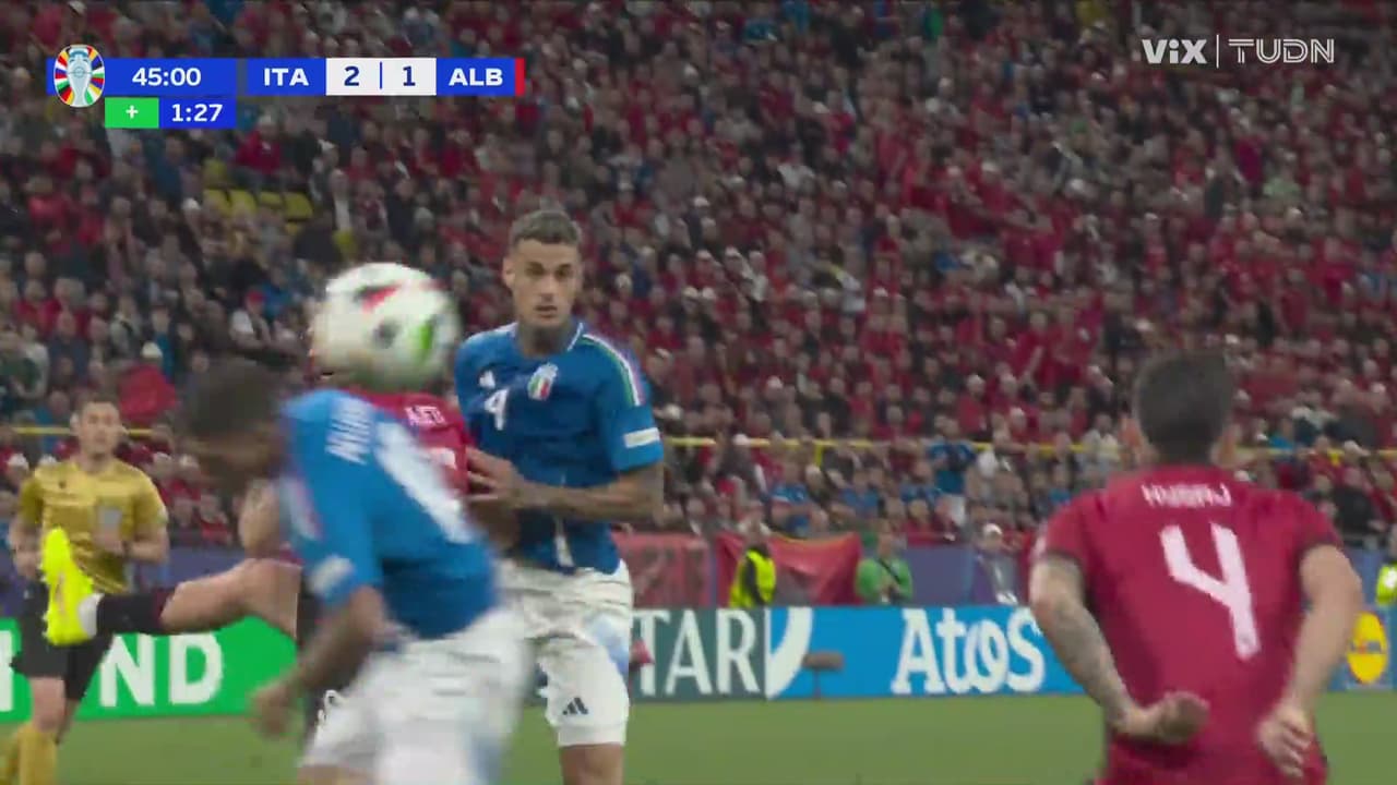 ¡No la esperaba! Remate de Pellegrini con el hombro al arco de Albania