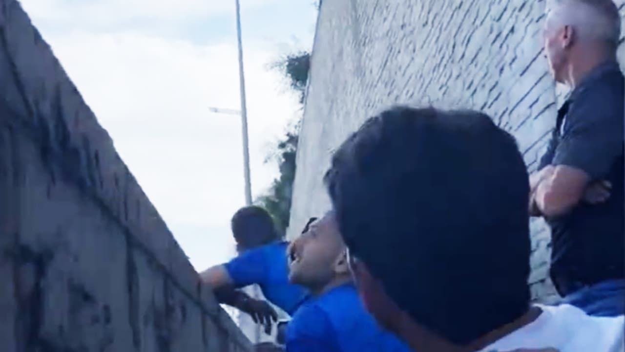 Los jugadores se colocaron detrás de la vaya de contención y a desnivel de la carretera para ocultarse ante la probabilidad de que hubiera un cruce de fuego; por suerte, el equipo no sufrió algún tipo de daño y pudo continuar su traslado hasta el aeropuerto.