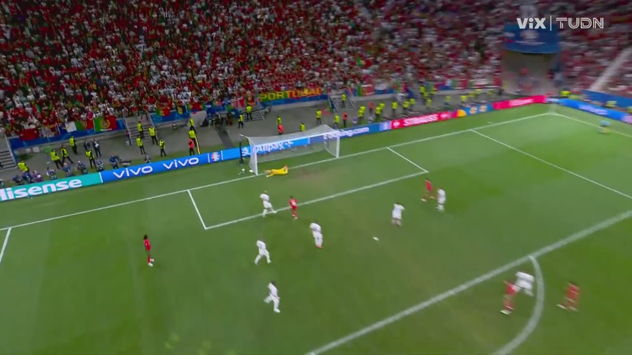En la última del primer tiempo el volante de Portugal disparó con potencia, pero salió a un lado del arco esloveno.