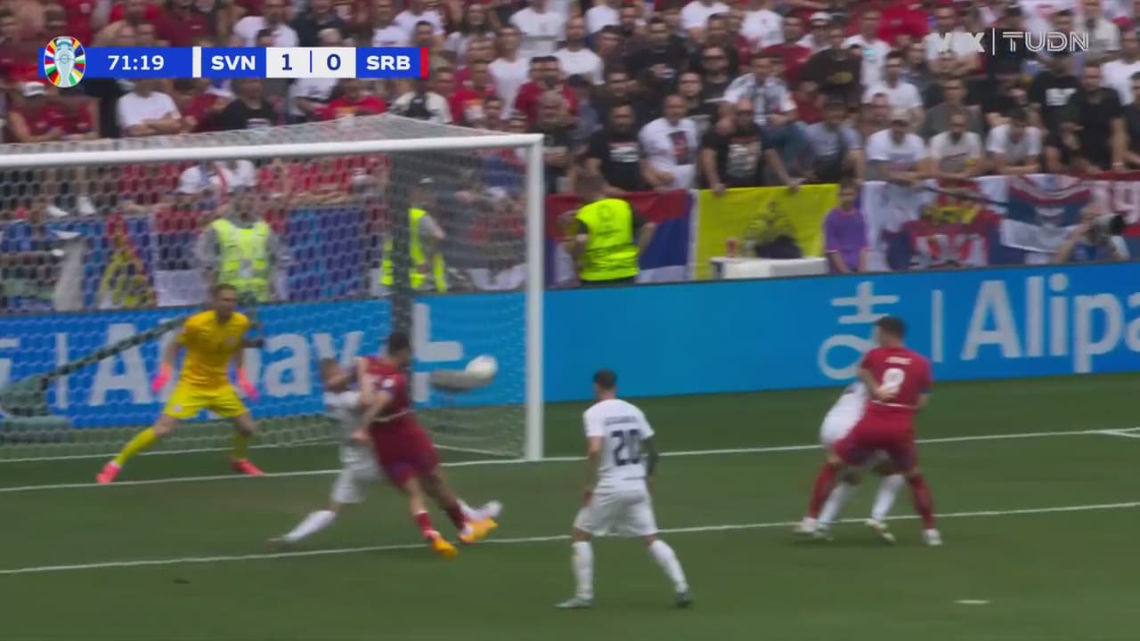 Un tiro de primera del delantero fue tocado por Karnicnik para que acabara reventando la escuadra y se salva Eslovenia.