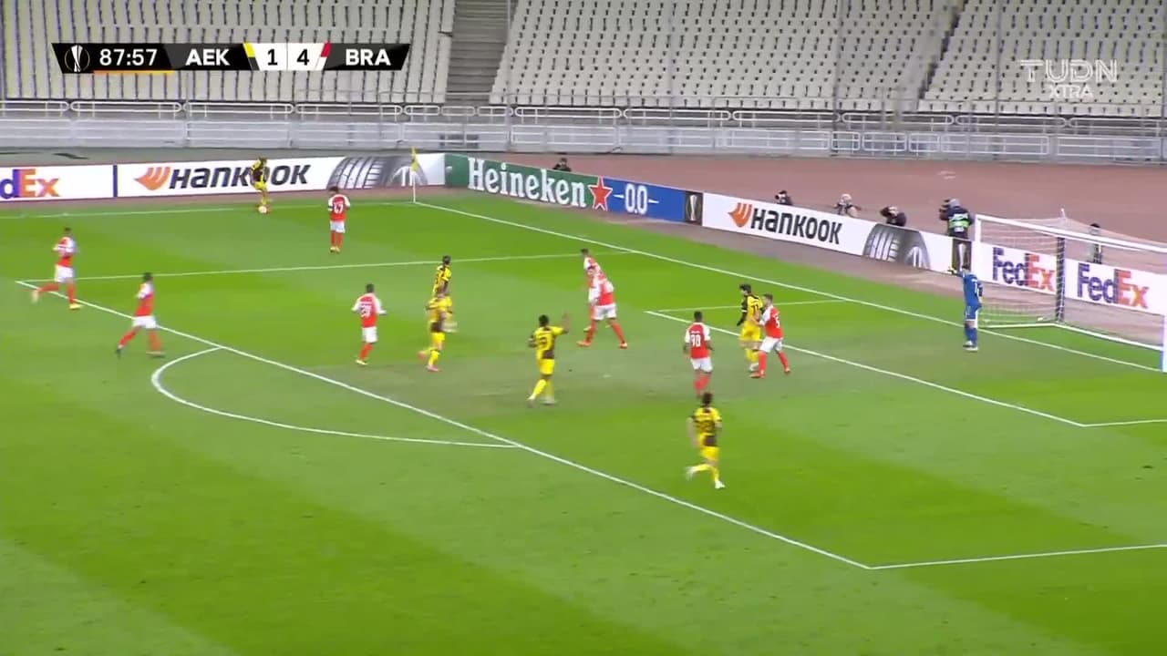 El mexicano dio dos asistencias en la goleada en casa frente al Aberdeen en la segunda jornada del torneo continental.