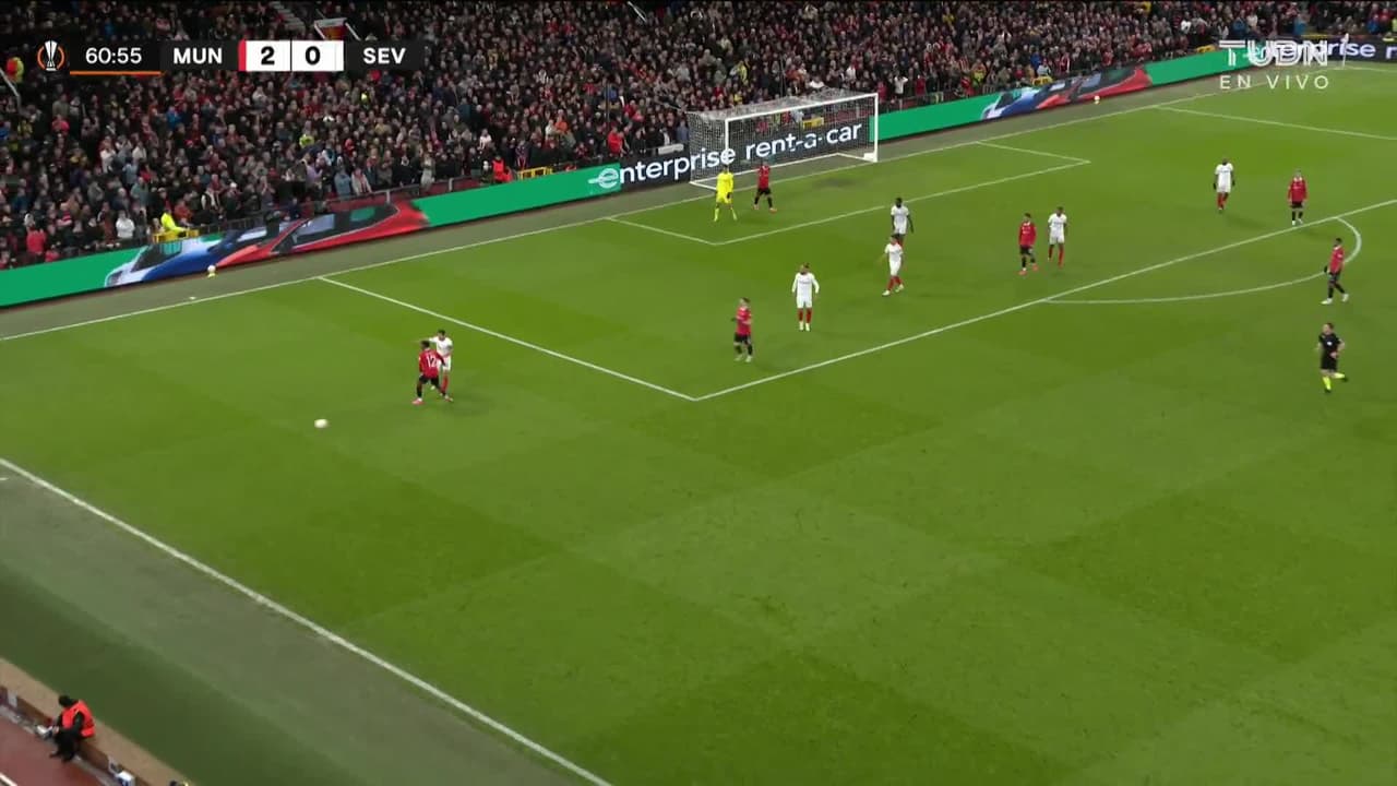 Antony (Manchester United) remata al poste izquierdo| zurdazo desde el lado derecho dentro del área. Asistencia de Aaron Wan-Bissaka.