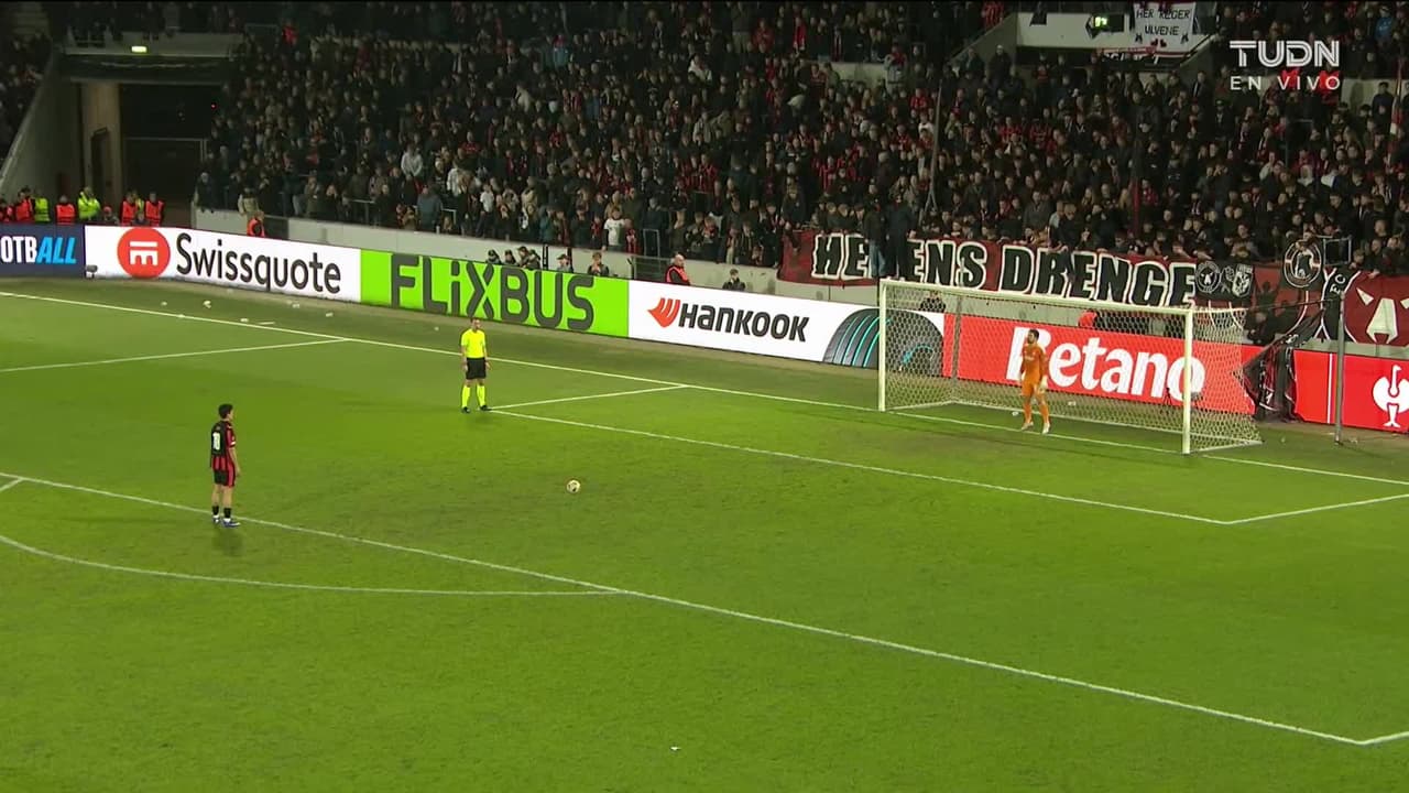 ¡Penalti fallado! FC Midtjylland 1| Nottingham Forest 2(1). Cho Gue-Sung (FC Midtjylland) remata palo| Disparo con la derecha.