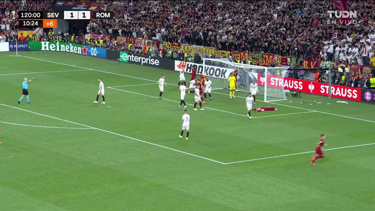 Chris Smalling (AS Roma) remata al travesaño| disparo de cabeza desde el centro del área. Asistencia de Nicola Zalewski con un centro al área tras un saque de esquina.
