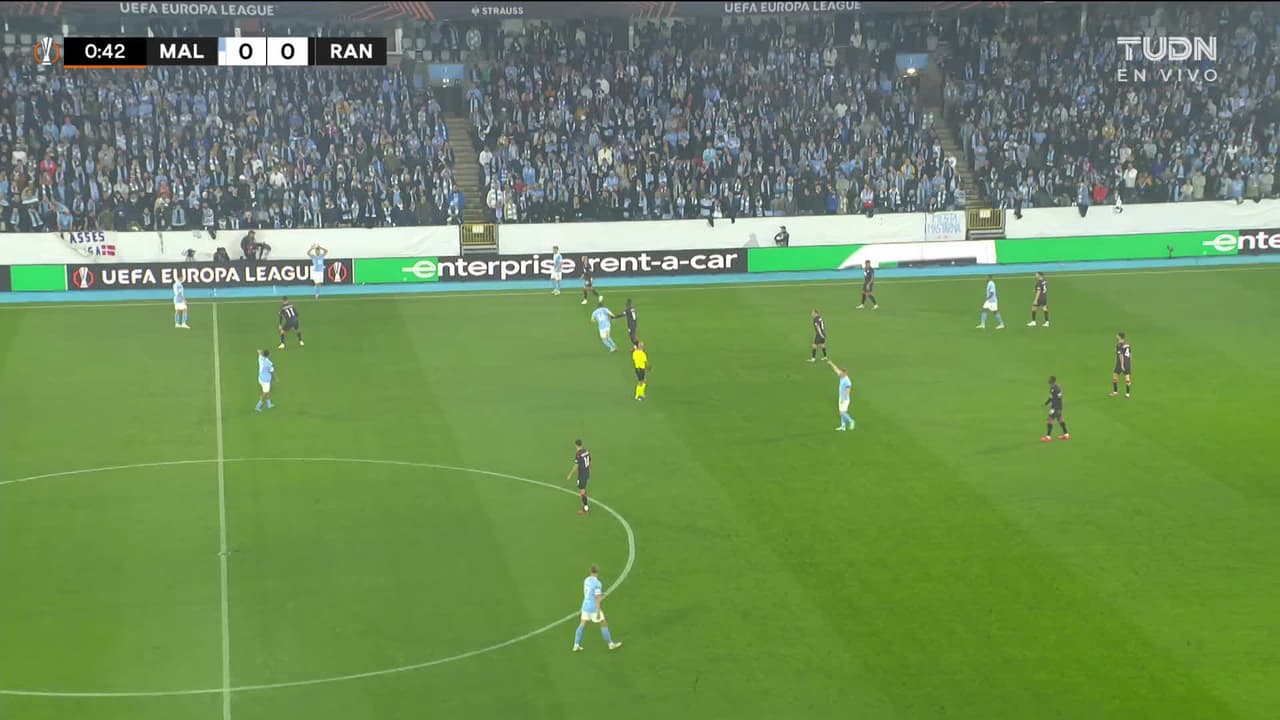 ¡CERCA! Cyriel Dessers disparó que se estrella en el poste.