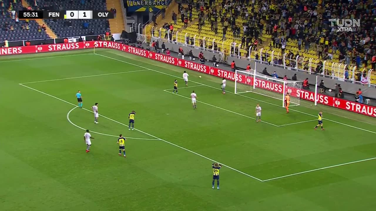Dimitrios Pelkas (Fenerbahçe) remata al poste derecho| Disparo con la derecha desde el centro del área. Asistencia de Attila Szalai.