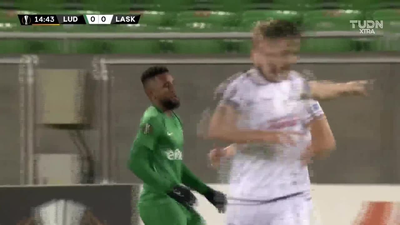 Dominik Reiter (LASK) remata al poste derecho| zurdazo desde el centro del área. Asistencia de René Renner.