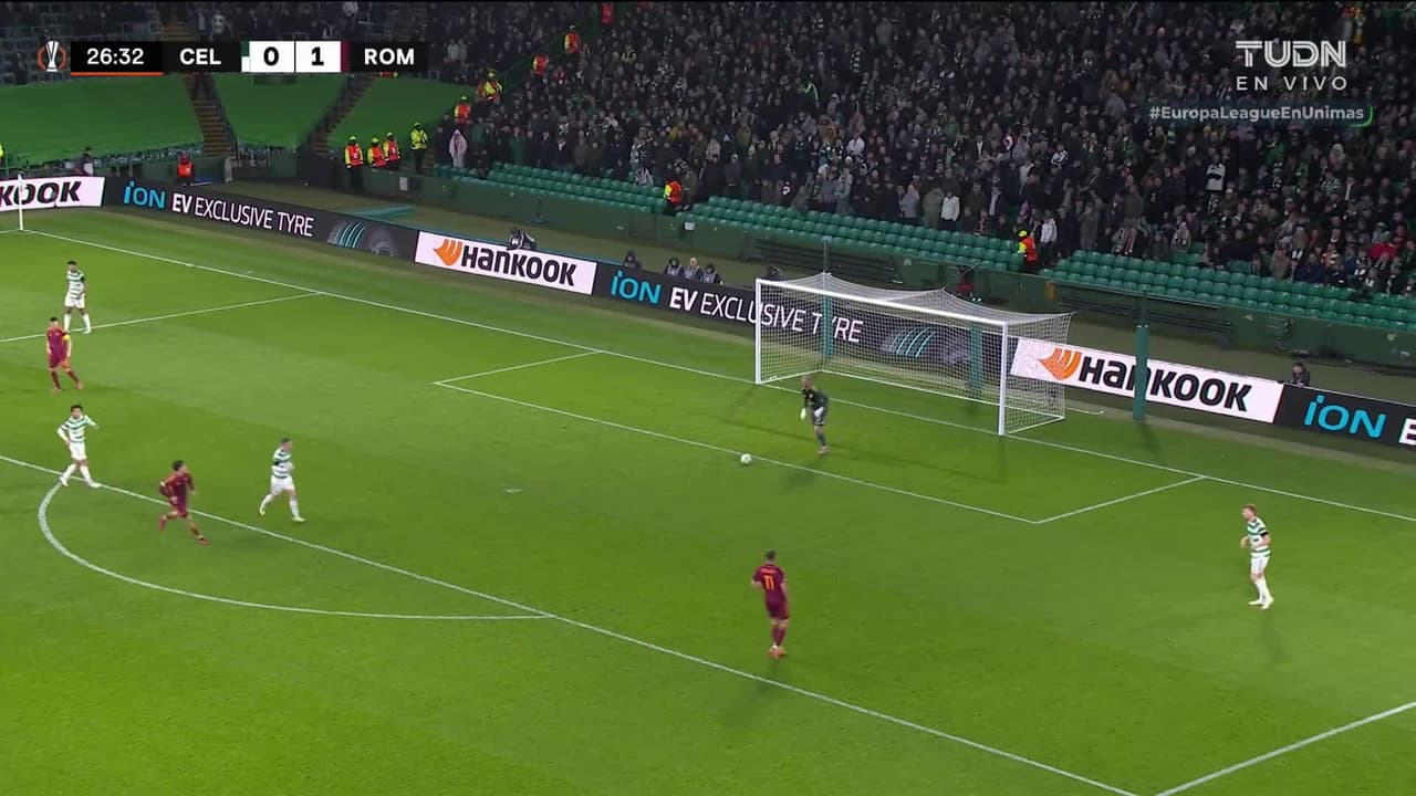 Evan Ferguson (AS Roma) remata al poste derecho| Disparo con la derecha desde el lado derecho dentro del área. Asistencia de Neil El Aynaoui.