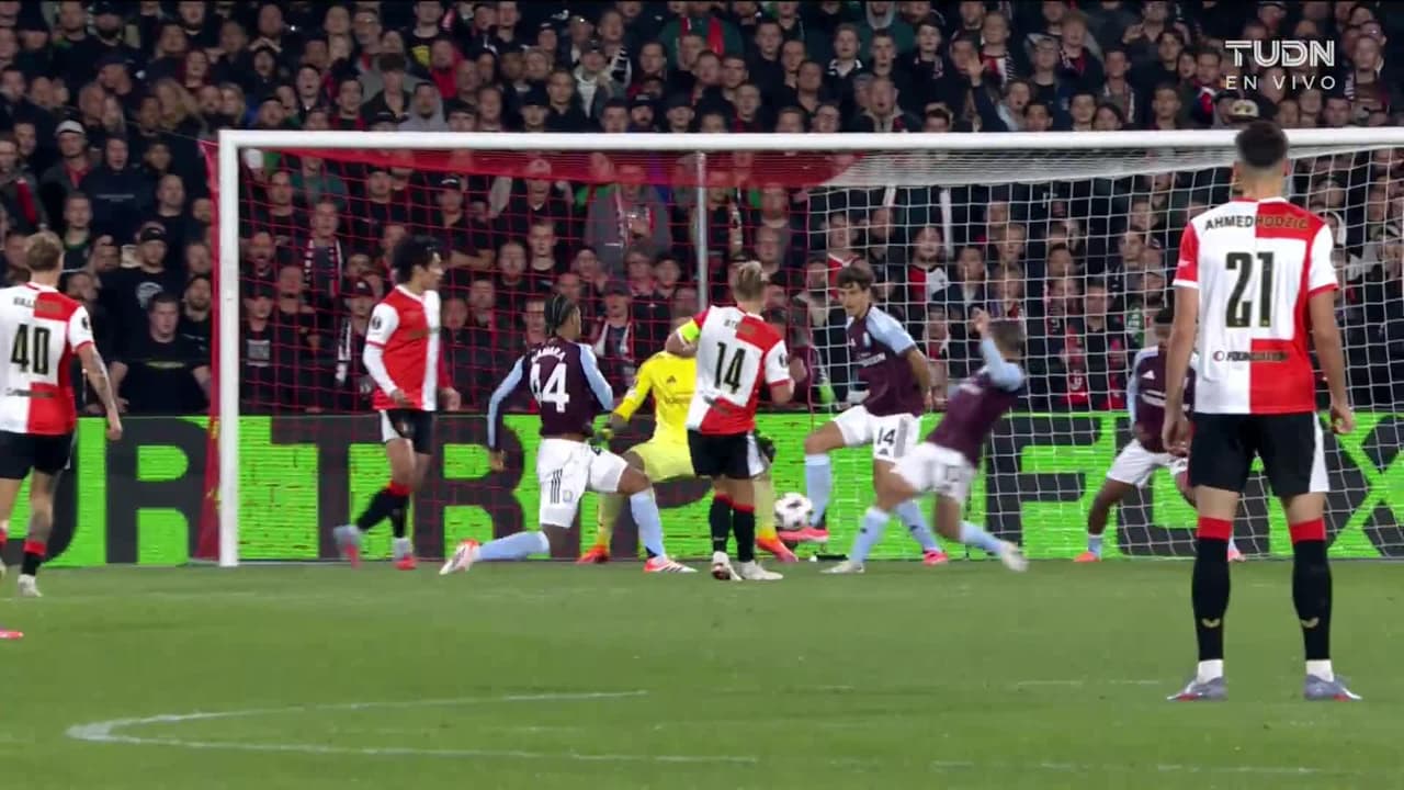 Evann Guessand (Aston Villa) remata al poste izquierdo| zurdazo desde el centro del área. Asistencia de Ian Maatsen.
