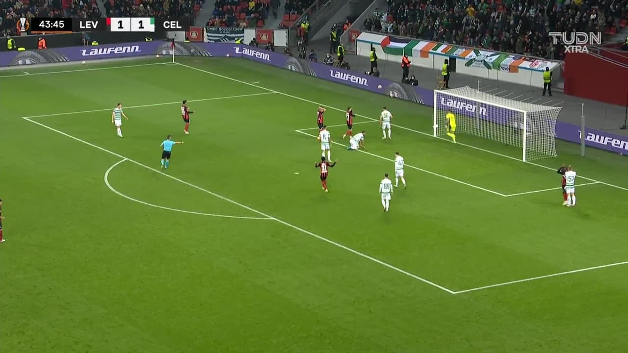 ¡CERCA! Florian Wirtz disparó que se estrella en el poste.