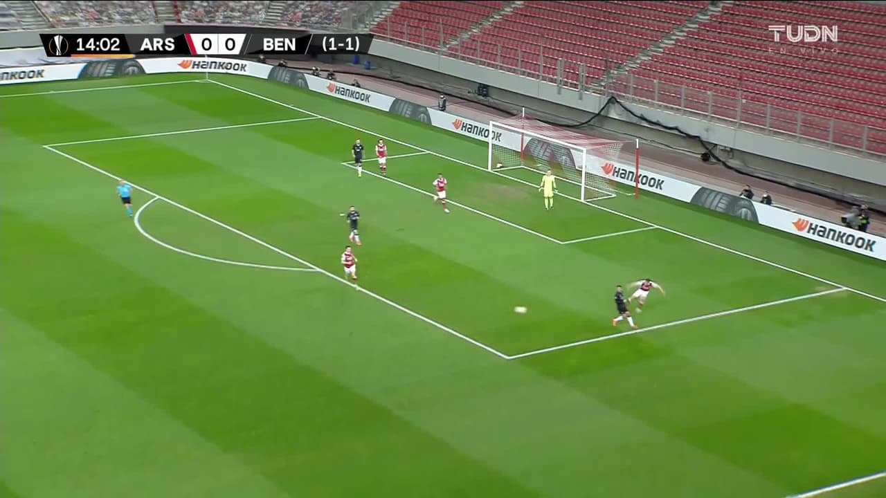 Haris Seferovic (Benfica) remata palo| zurdazo desde el lado izquierdo dentro del área.
