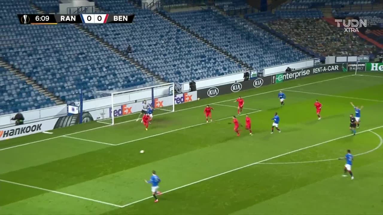 ¡CERCA! James Tavernier disparó que se estrella en el poste.