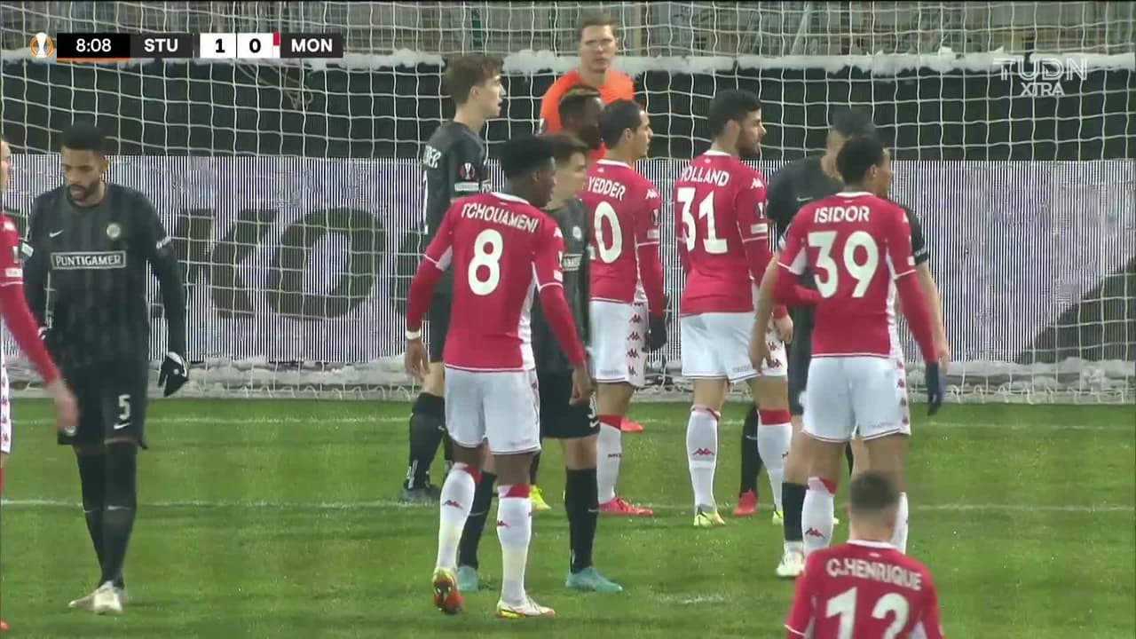 Kevin Volland (AS Monaco) remata palo| disparo de cabeza desde muy cerca tras un saque de esquina.