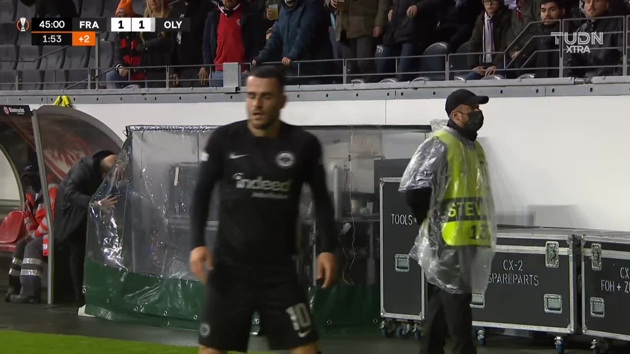 Martin Hinteregger (Eintracht Frankfurt) remata al travesaño| disparo de cabeza desde el centro del área. Asistencia de Filip Kostic con un centro al área tras un saque de esquina.
