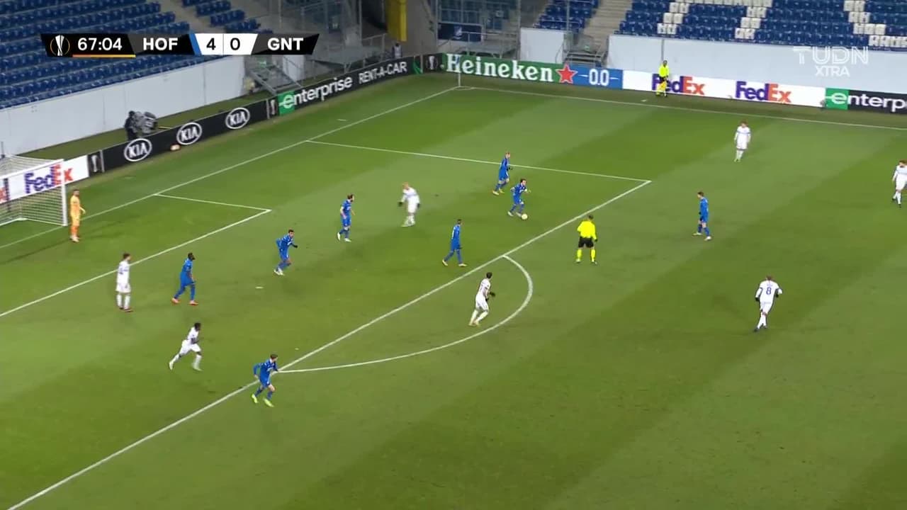 Munas Dabbur (TSG 1899 Hoffenheim) remata al travesaño| Disparo con la derecha desde el lado derecho dentro del área. Asistencia de Mijat Gacinovic tras un contragolpe.