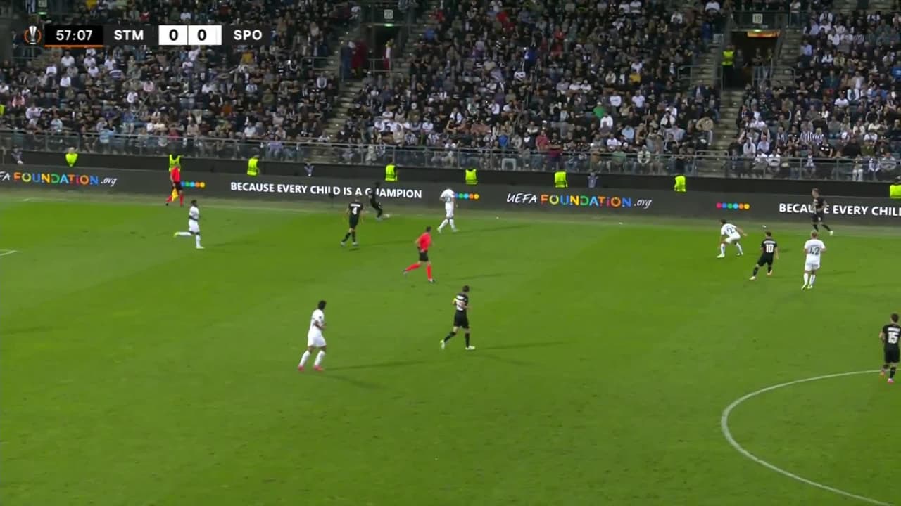 Otar Kiteishvili (SK Puntigamer Sturm Graz) remata palo| Disparo con la derecha desde fuera del área.