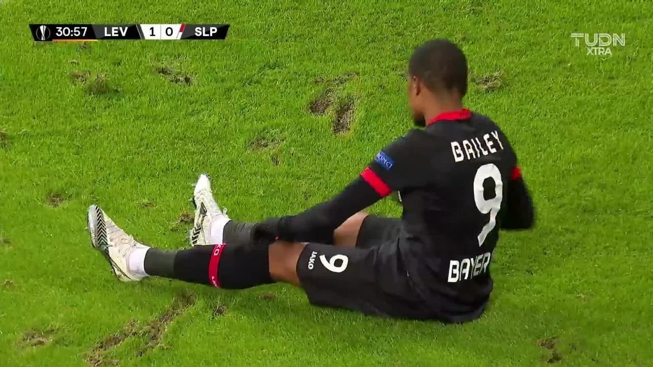 Patrik Schick (Bayer 04 Leverkusen) remata al poste izquierdo| disparo de cabeza desde el centro del área. Asistencia de Nadiem Amiri con un centro al área.