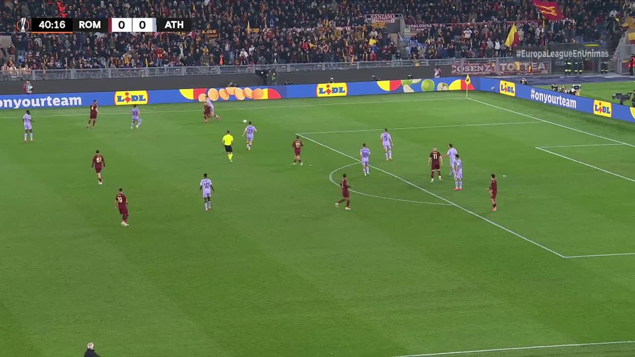 Paulo Dybala (AS Roma) remata palo| zurdazo desde el centro del área.