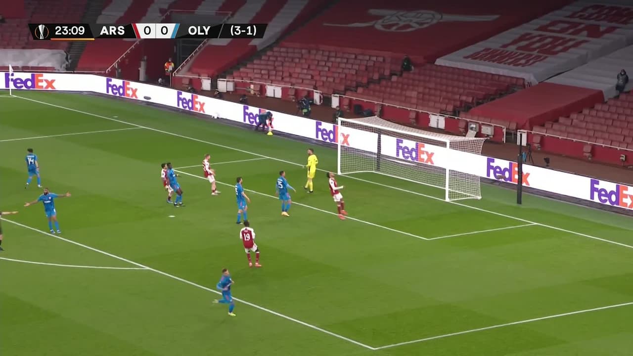 Pierre-Emerick Aubameyang (Arsenal) remata palo| Disparo con la derecha desde el centro del área.