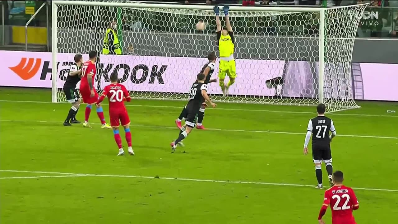 Piotr Zielinski (Napoli) remata al travesaño| Disparo con la derecha desde el centro del área. Asistencia de Diego Demme.