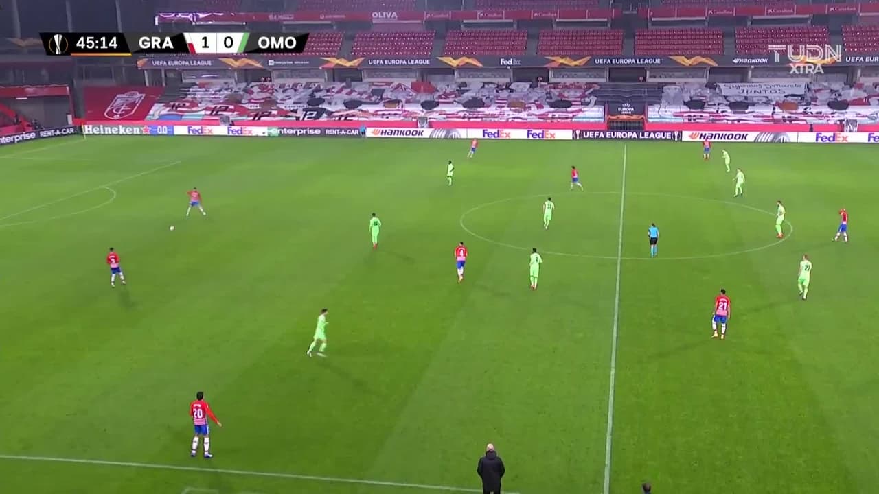 Roberto Soldado (Granada CF) remata palo| Disparo con la derecha desde fuera del área.