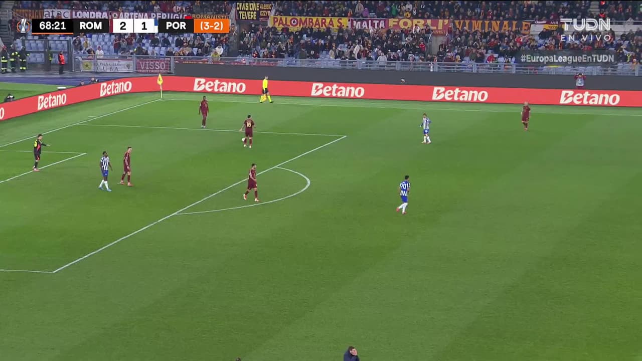 Samu Aghehowa (FC Porto) remata al poste derecho| Disparo con la derecha desde el centro del área.