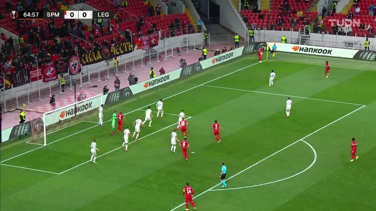 Samuel Gigot (Spartak Moscow) remata palo| disparo de cabeza desde el centro del área.