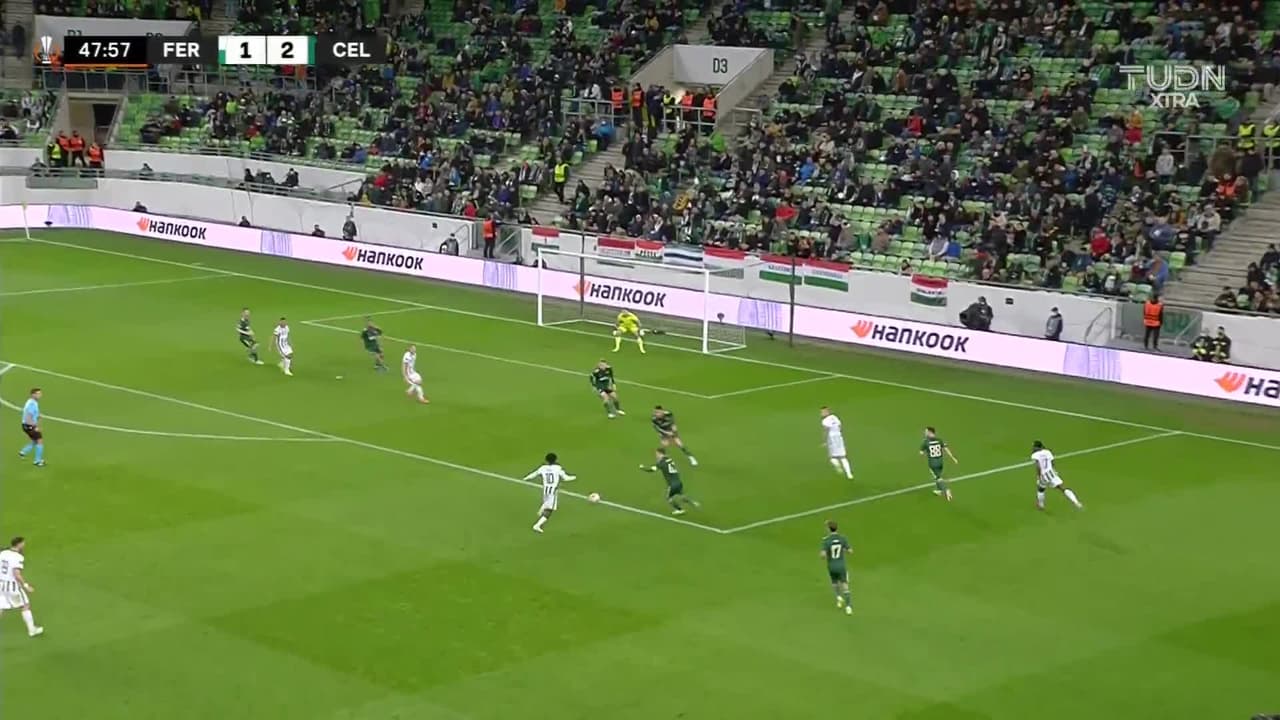 Tokmac Chol Nguen (Ferencvárosi TC) remata al travesaño| Disparo con la derecha desde fuera del área. Asistencia de Oleksandr Zubkov.