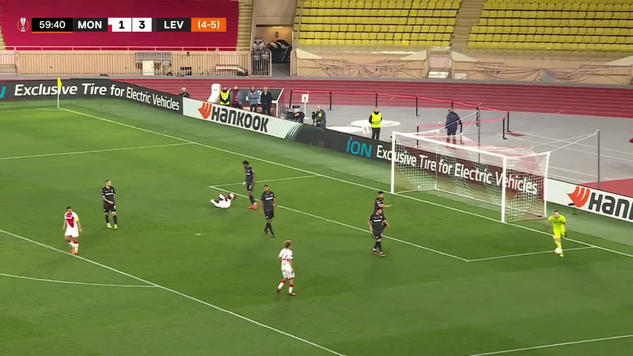 Wissam Ben Yedder (AS Monaco) remata palo| Disparo con la derecha desde el centro del área tras un contragolpe.