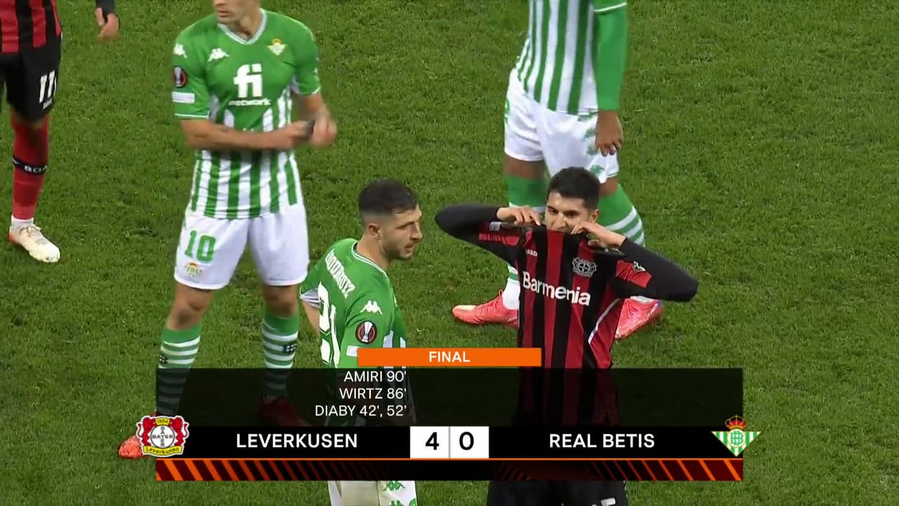 Final del partido' Bayer 04 Leverkusen 4| Real Betis 0.
