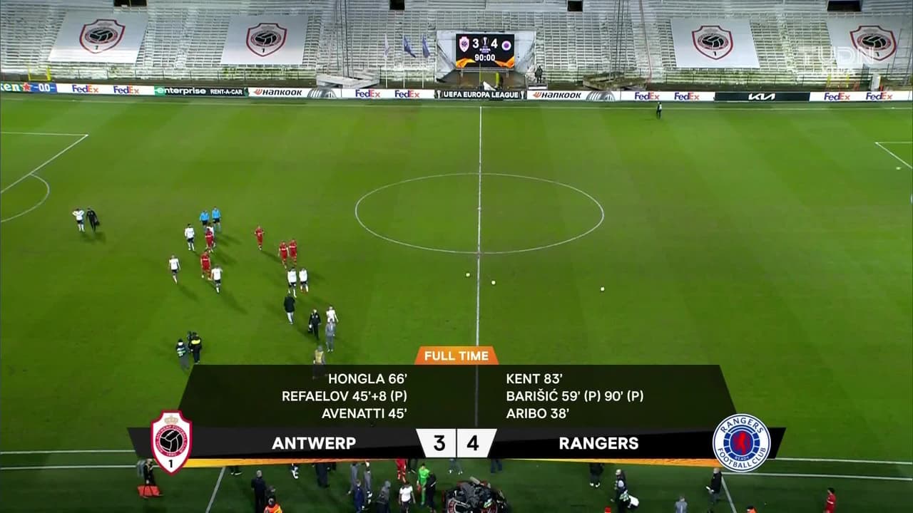 Final del partido' Royal Antwerp 3| Rangers 4.