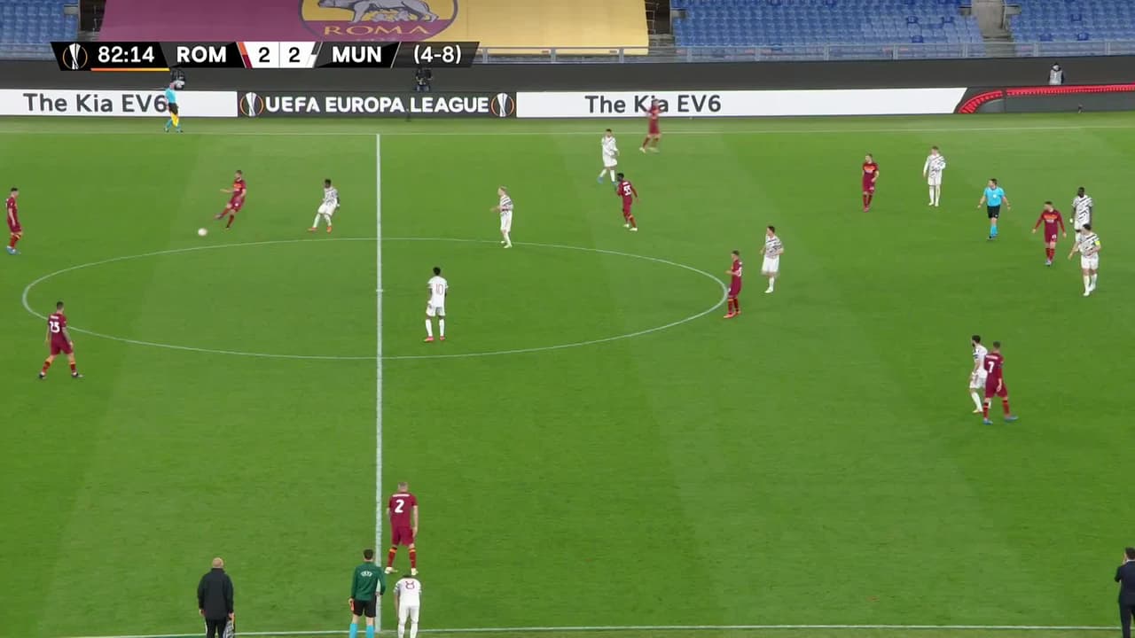 ¡Gol! AS Roma 3| Manchester United 2. Nicola Zalewski (AS Roma) Disparo con la derecha desde el lado derecho dentro del área por el lado derecho de la portería. Asistencia de Davide Santon con un centro al área.