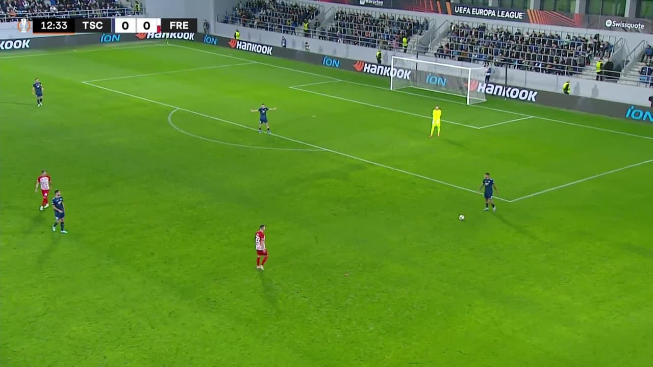 ¡Gol! Backa Topola 1| Sport-Club Freiburg 0. Nemanja Petrovic (Backa Topola) zurdazo desde el centro del área.