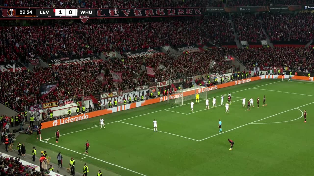 ¡Gol! Bayer 04 Leverkusen 2| West Ham United 0. Victor Boniface (Bayer 04 Leverkusen) disparo de cabeza desde el centro del área tras un saque de esquina.