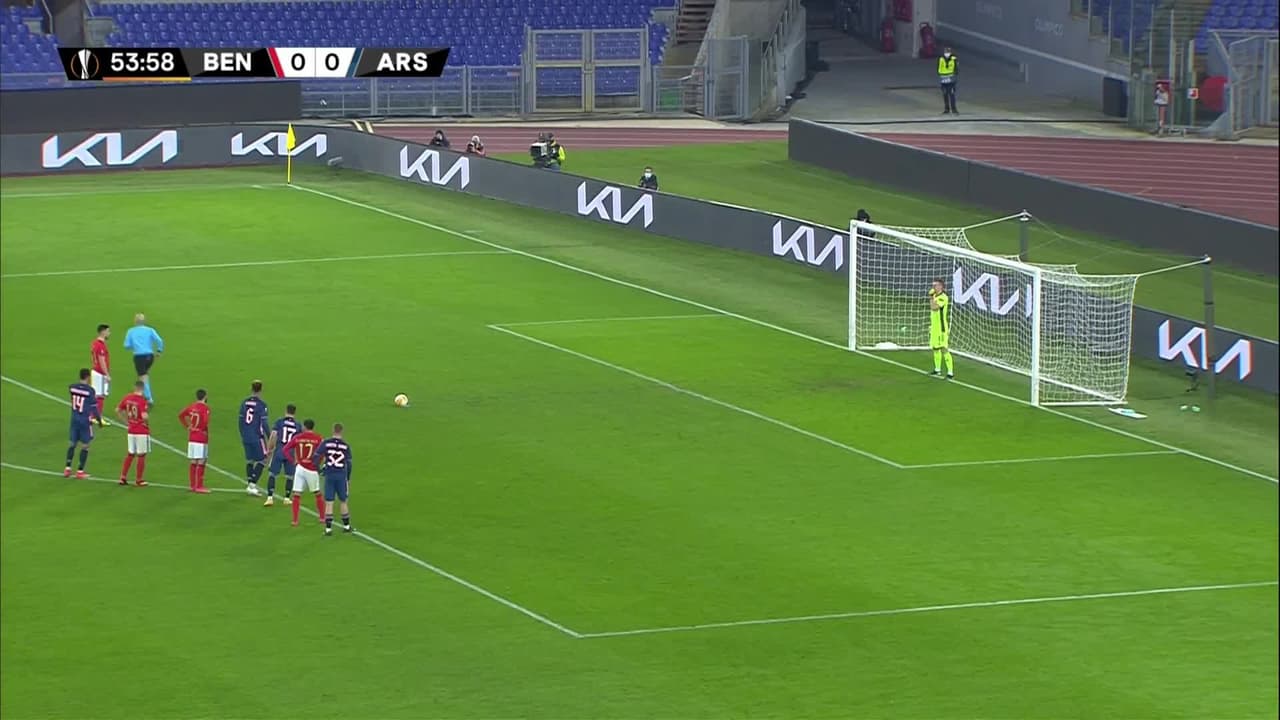 ¡Gol! Benfica 1| Arsenal 0. Pizzi (Benfica) convirtió el penalti Disparo con la derecha por el lado derecho de la portería.