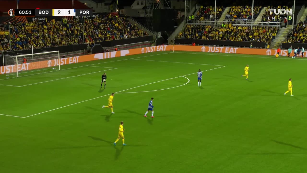 ¡Gol! Bodø/Glimt 3| FC Porto 1. Jens Petter Hauge (Bodø/Glimt) Disparo con la derecha desde el centro del área tras un contragolpe.