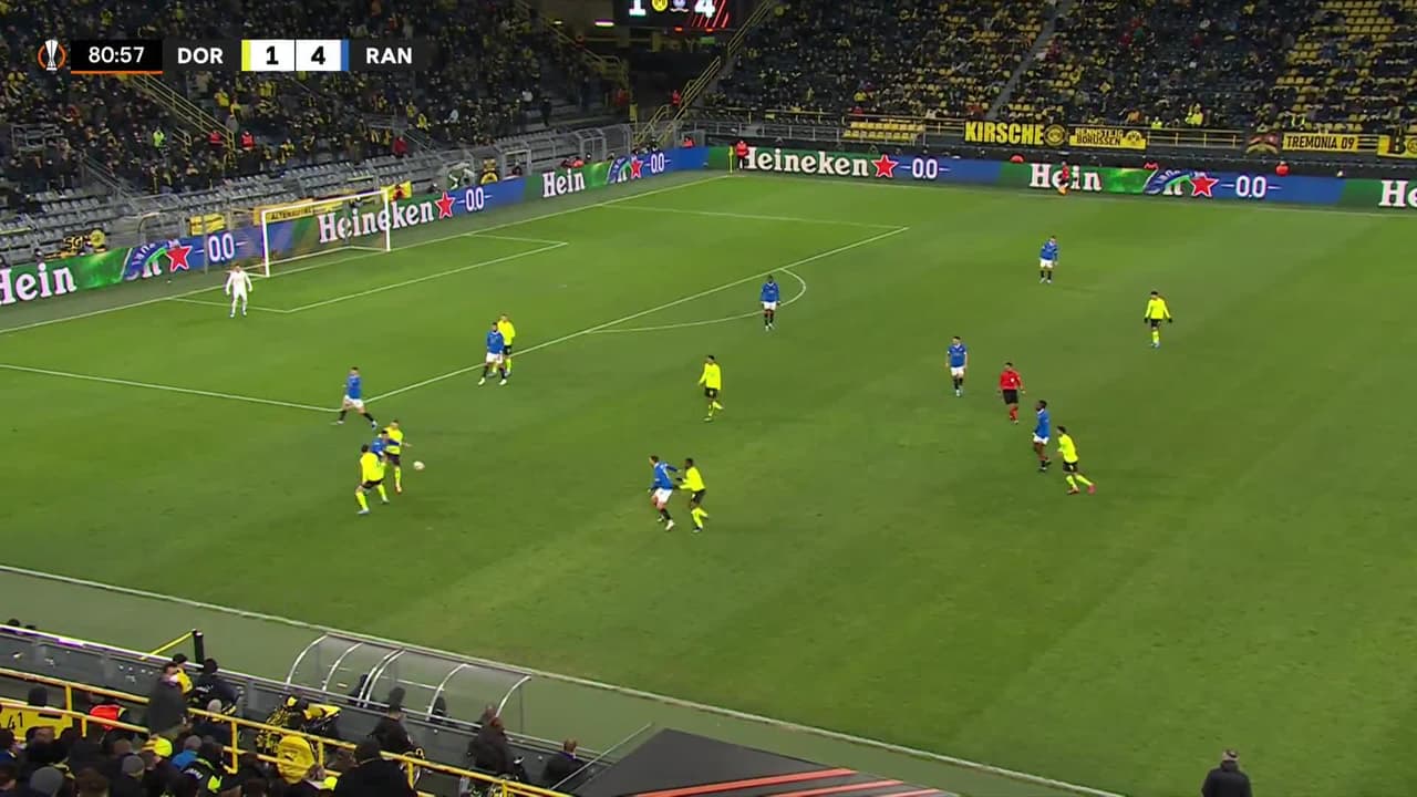 ¡Gol! Borussia Dortmund 2| Rangers 4. Raphael Guerreiro (Borussia Dortmund) zurdazo desde fuera del área.